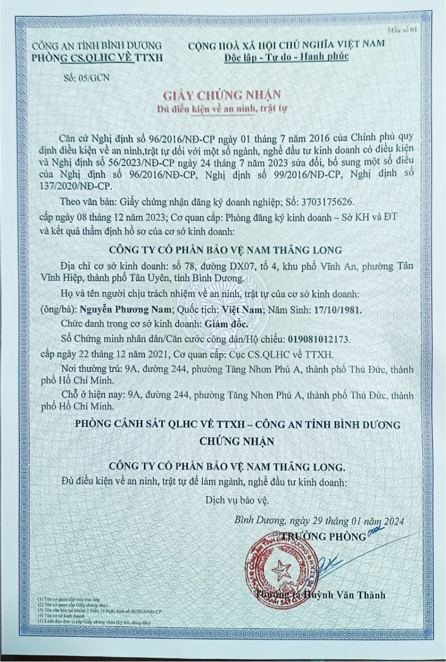 Với đội ngũ nhân viên chuyên nghiệp, kỹ thuật viên đào tạo chất lượng và sự hỗ trợ 24/7, Nam Thăng Long Security không chỉ là những người bảo vệ, mà là đối tác đồng hành, đảm bảo an ninh toàn diện cho mọi khía cạnh của cuộc sống và kinh doanh.